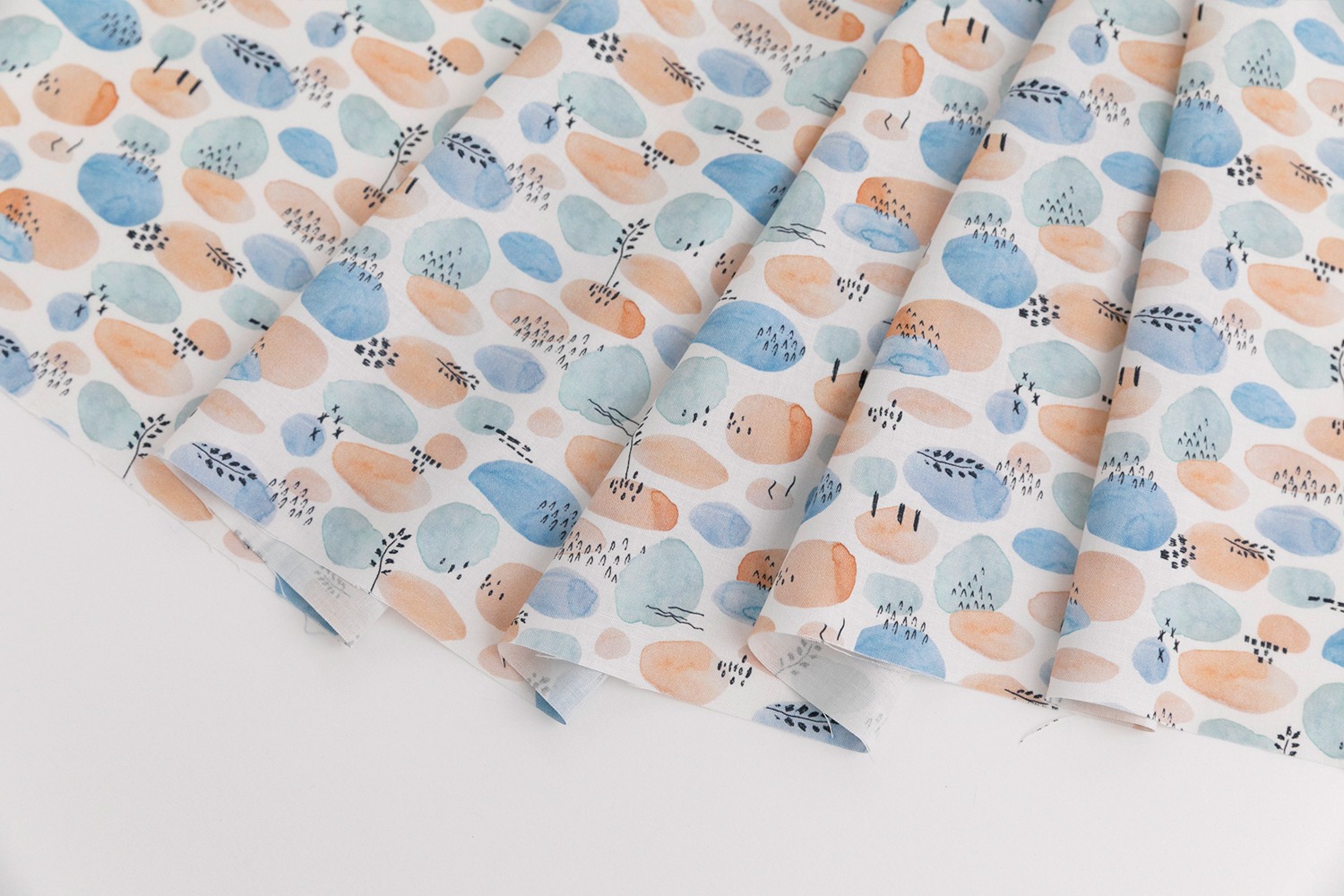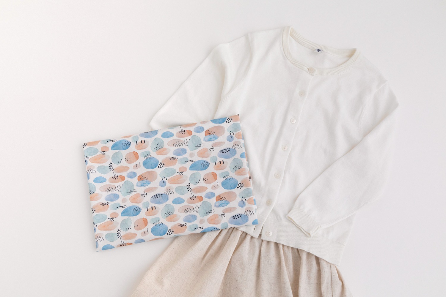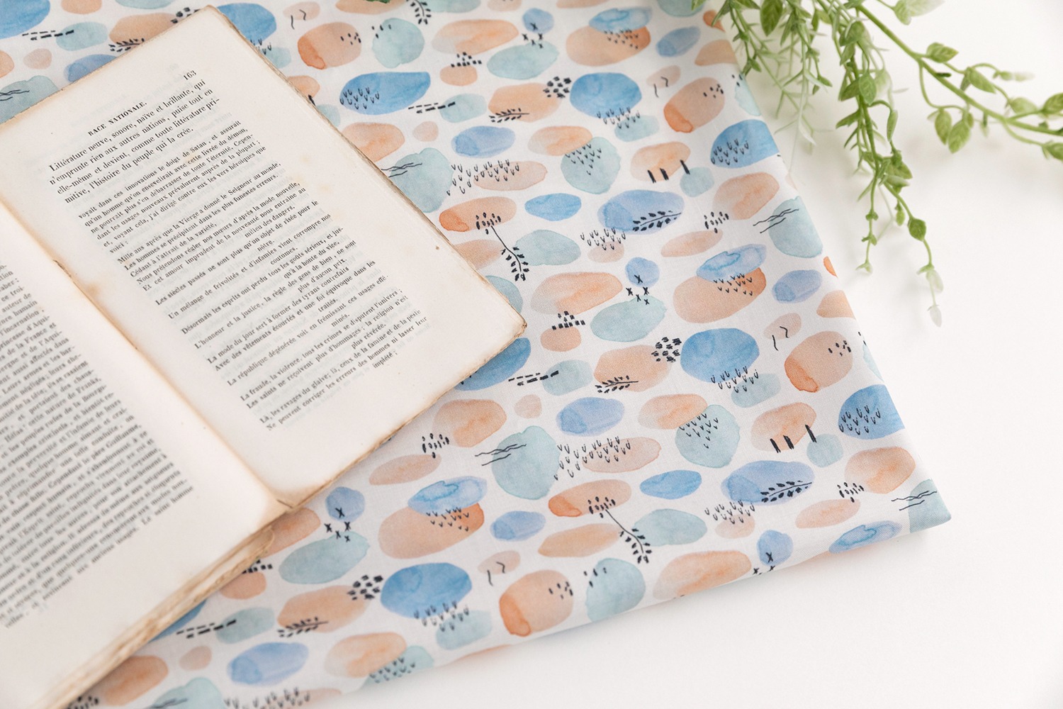 やわらかな水彩タッチで描かれた、やさしいしずく模様の「ドリーミードロップ」。