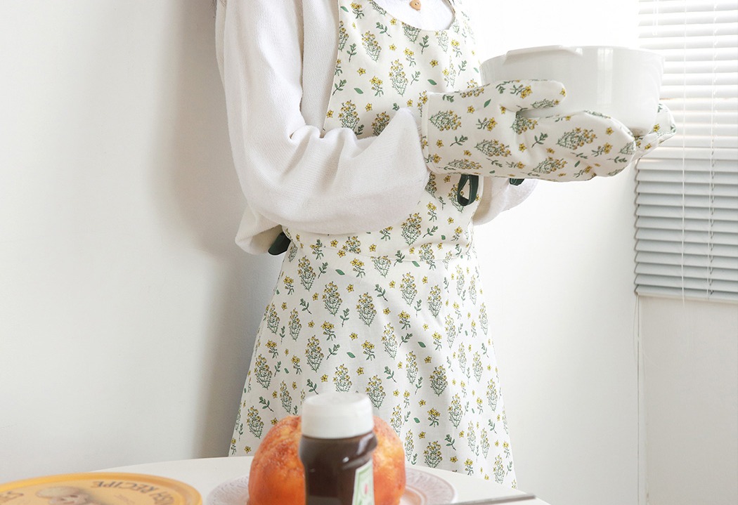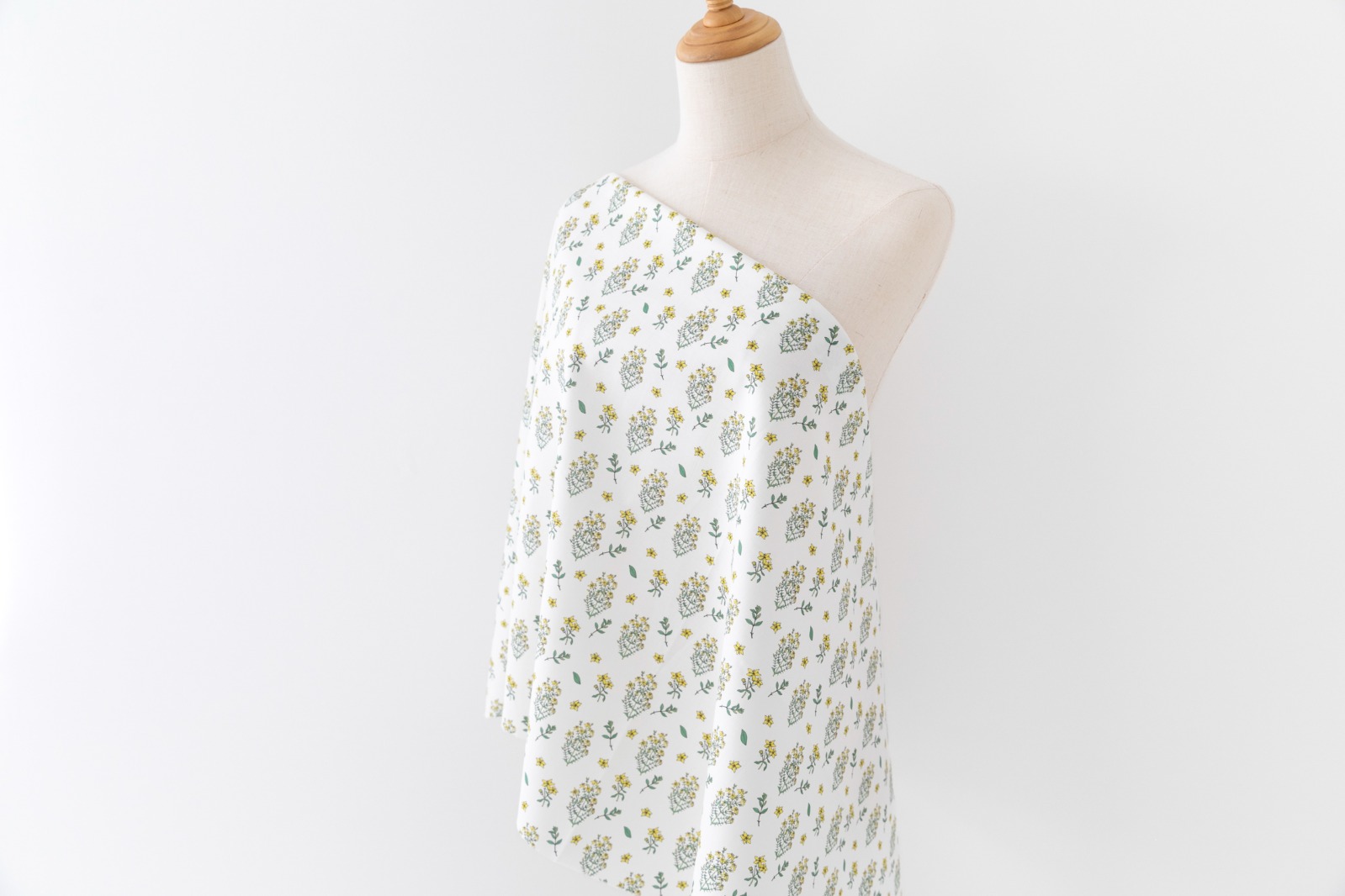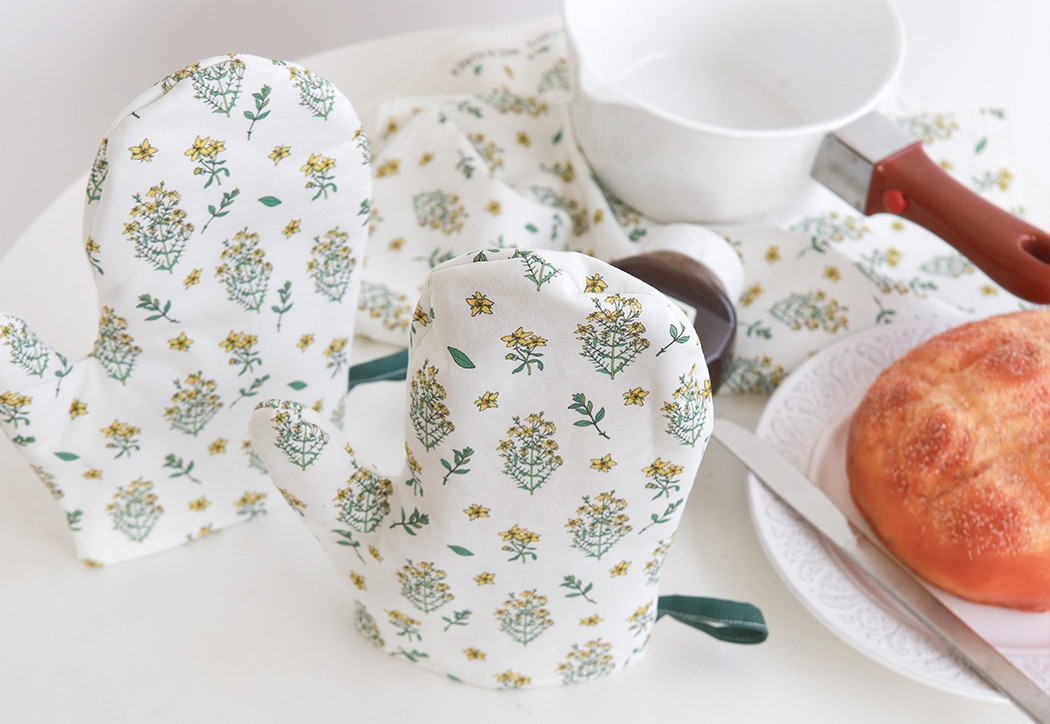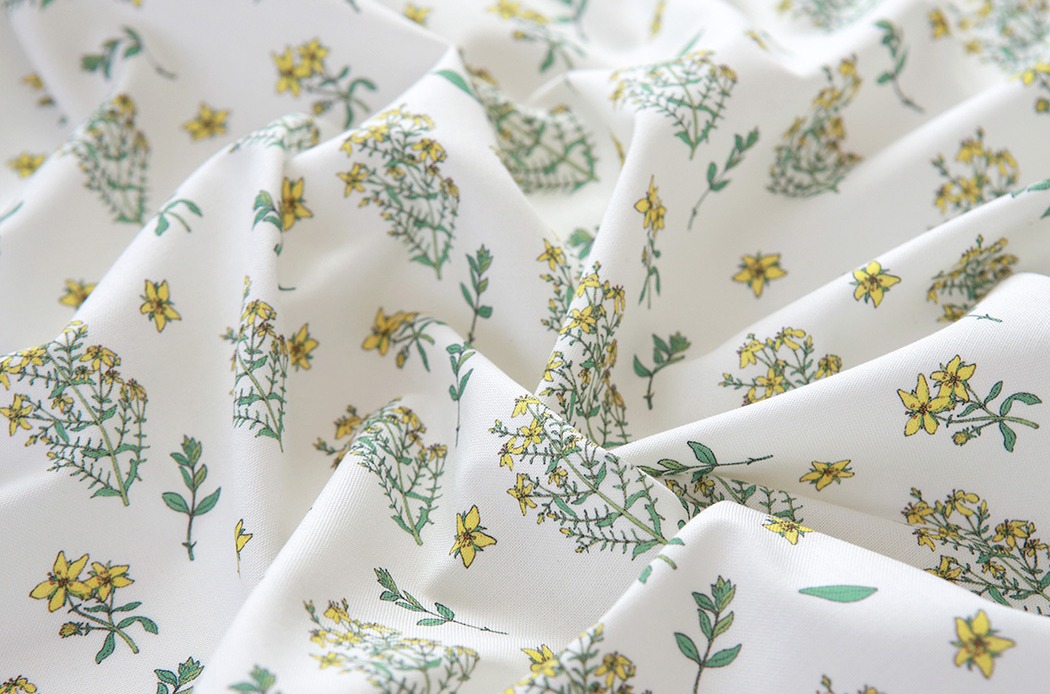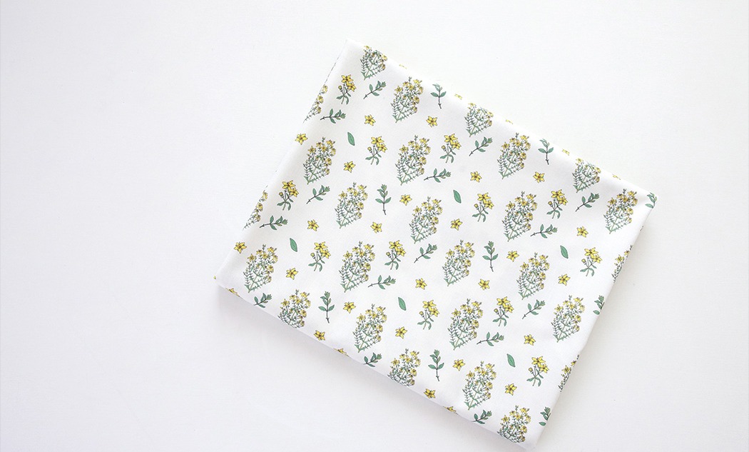 清楚なホワイト地に、やさしく映えるイエローとグリーン。