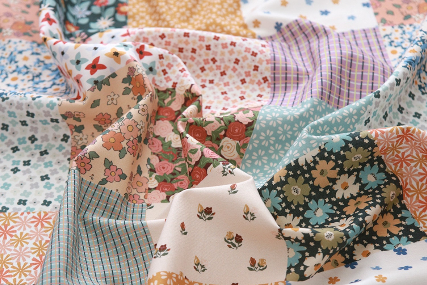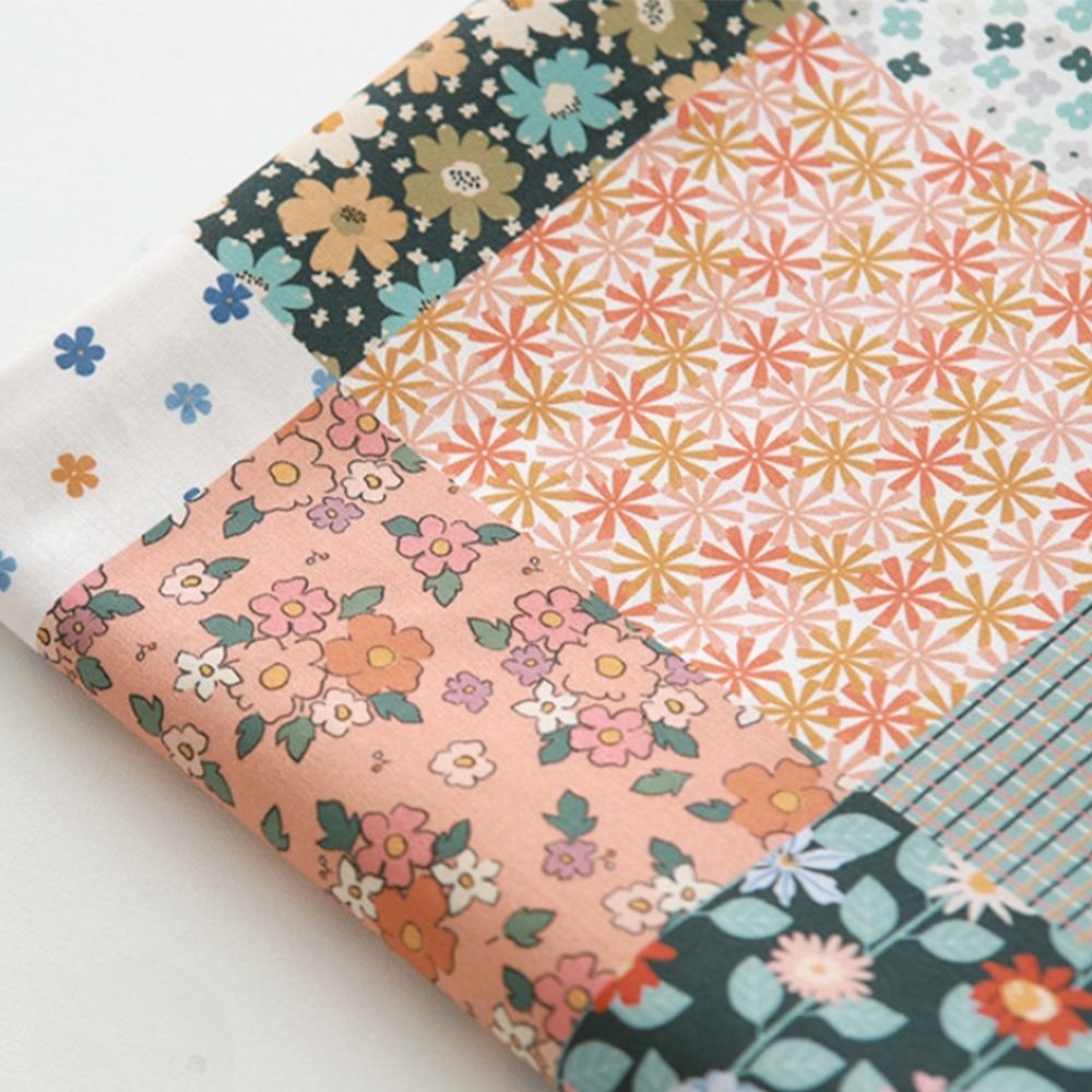 ロマンティックなムードのフラワーから、カラフルな大きめフラワーまで、多彩に可愛らしく描かれたコットン生地です。