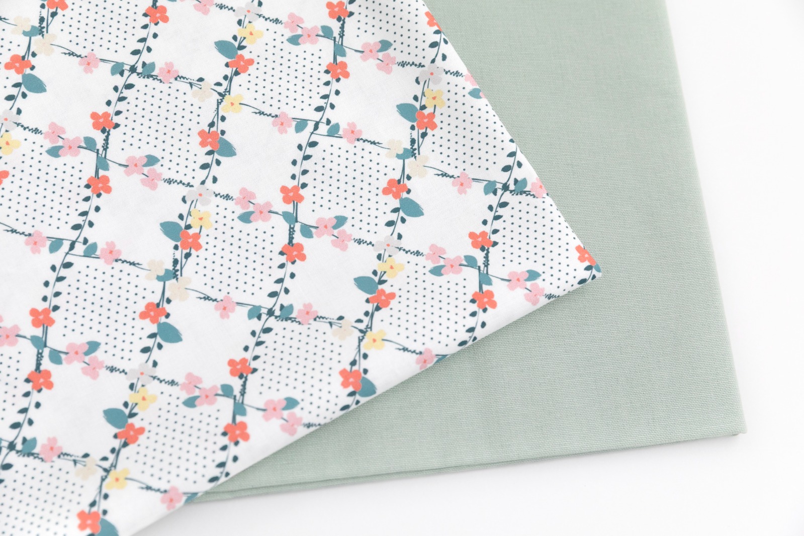 こちらの生地は「ミニフラワーグリーン」、淡いグレイッシュグリーンです。