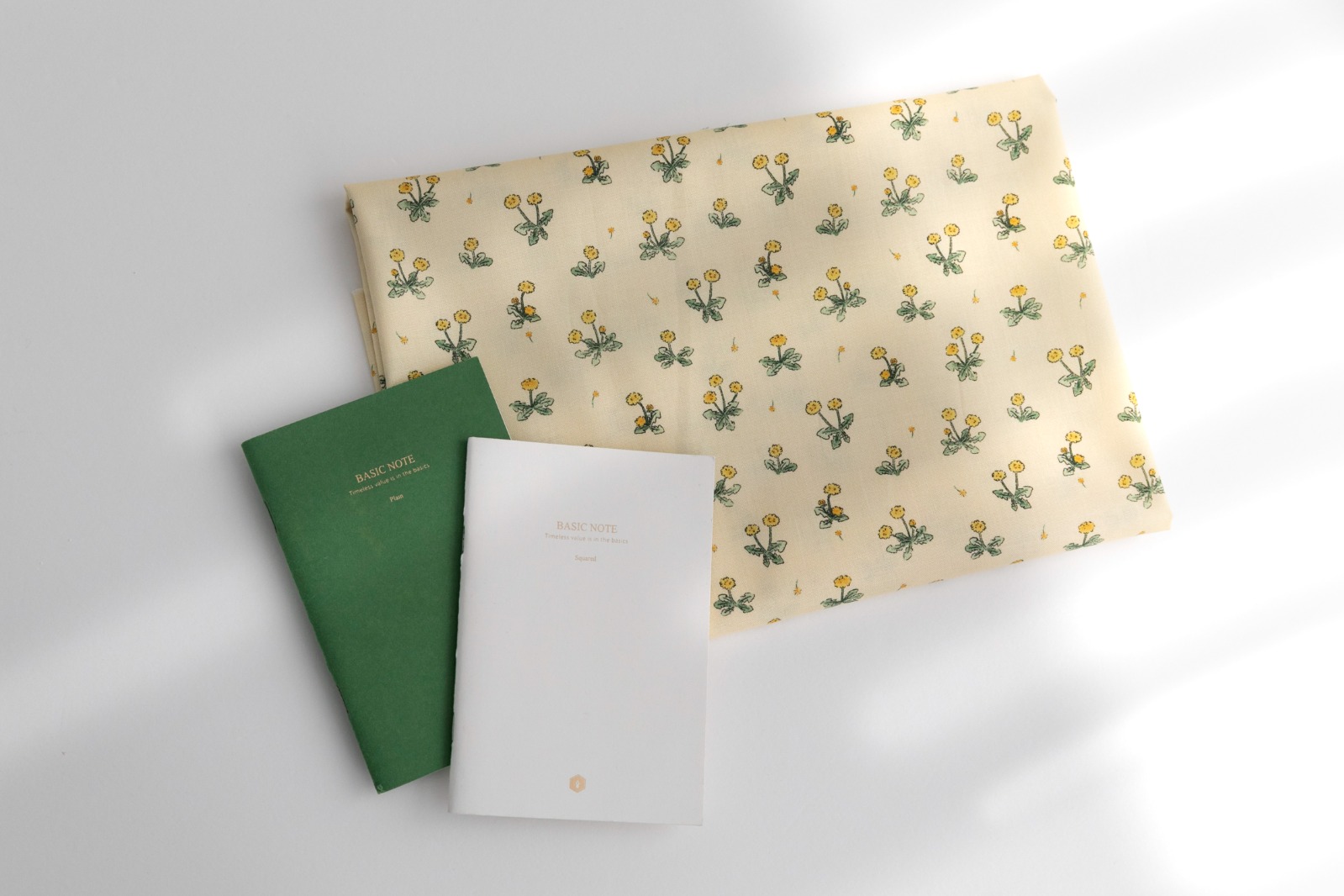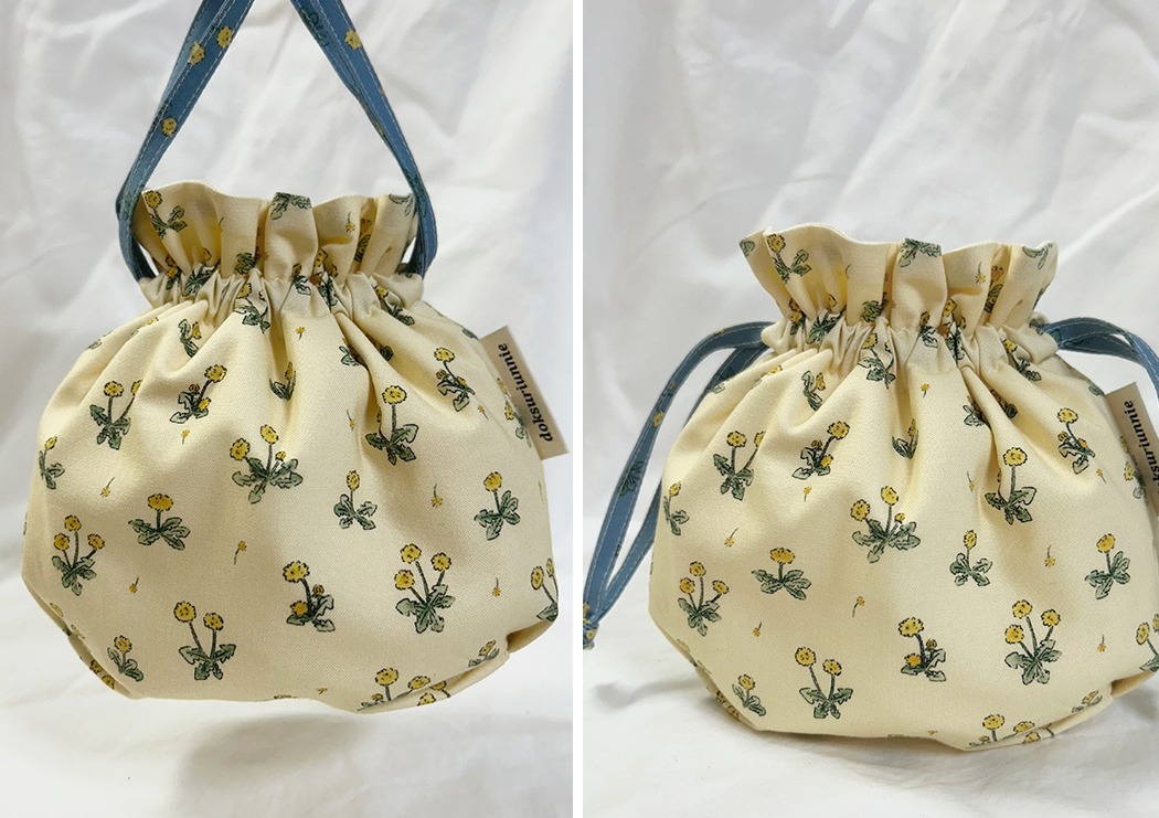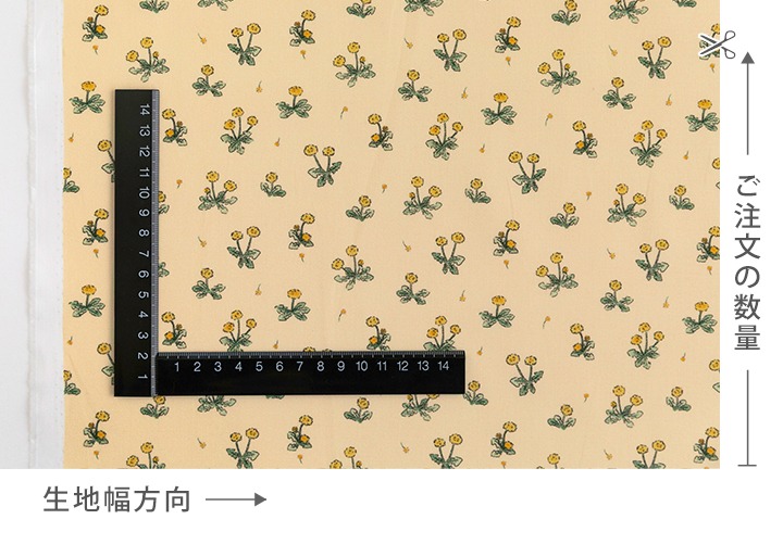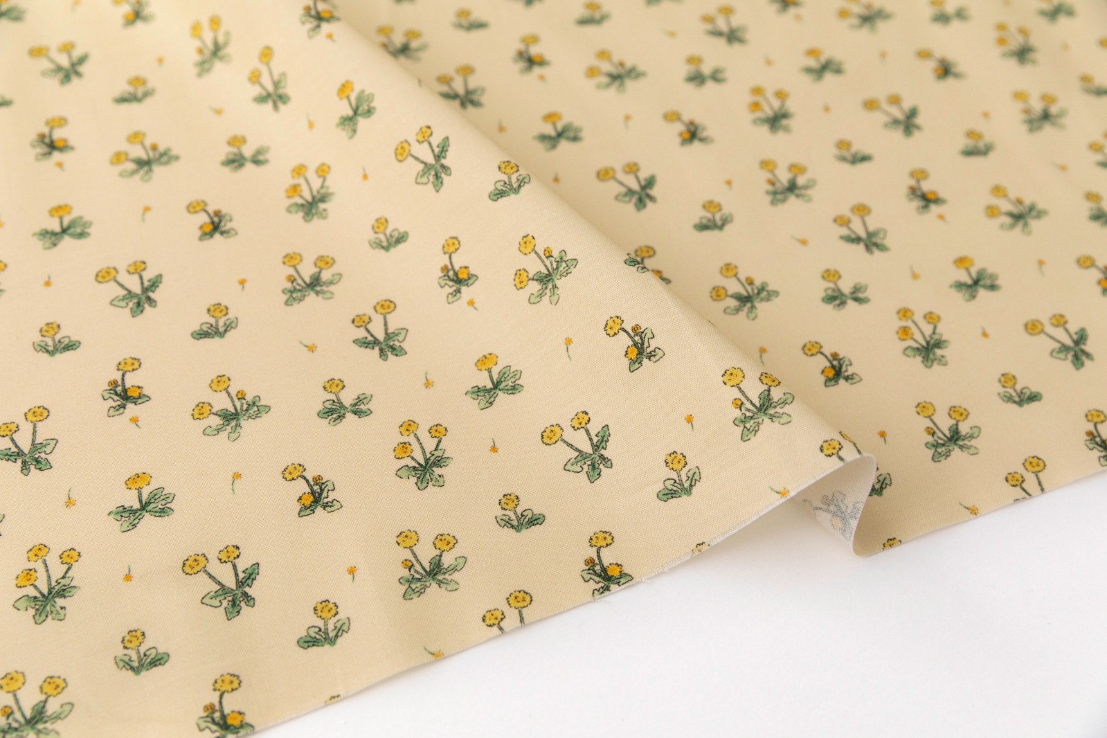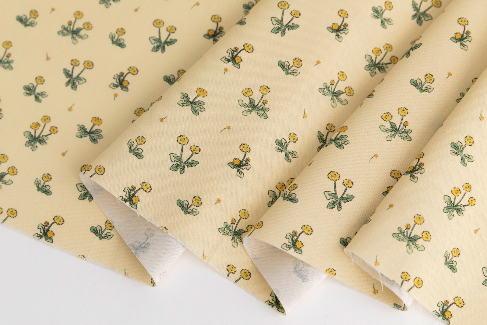 淡いイエロー地に、タンポポのイエローとグリーンの色合いが映え、やさしくあたたかな雰囲気のデザイン。